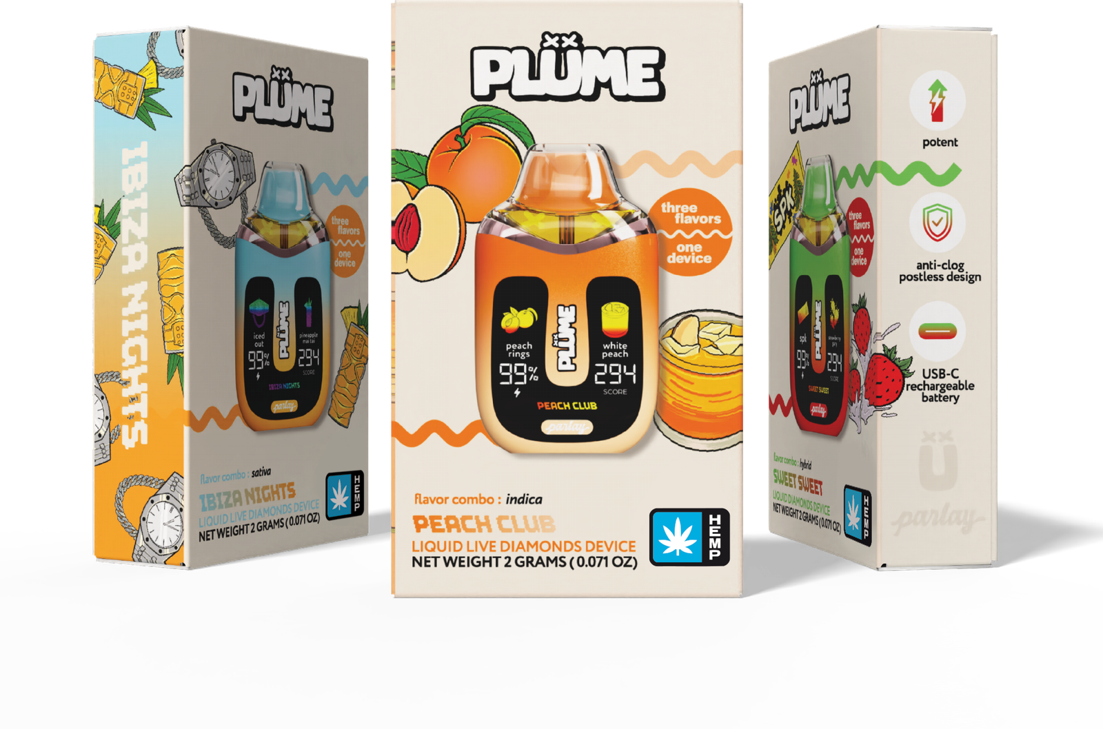 Industry leaders with our proprietary cutting-edge atomization technology, aesthetic, and flavor formulations, Plume brings you our newest three-in-one flavor cocktail, the PLUME PARLAY. Our proprietary terpene formula optimizes taste and is tailor-made for the parlay device, providing consumers with just the right amount of hit and flavor with every pull.