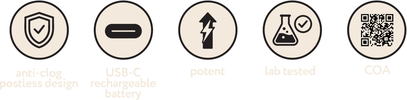 Taking our extensive experience in the hemp manufacturing industry, we utilize a proprietary terpene formula optimizing taste and just the right amount of “hit, that is specifically formulated for our device which we developed in-house. This advanced atomization technology houses the perfect formulation to provide consumers with the ultimate psychoactive experience similar to cannabis without the adverse effects